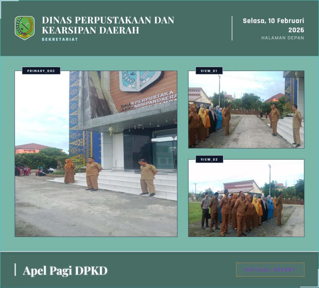 Sambas- Selasa, 10 Februari 2026 Apel Pagi di Lingkungan Dinas Perpustakaan dan Kearsipan Daera Kabupaten Sambas yang kali ini di Pimpin Oleh Sekretaris Dinas.